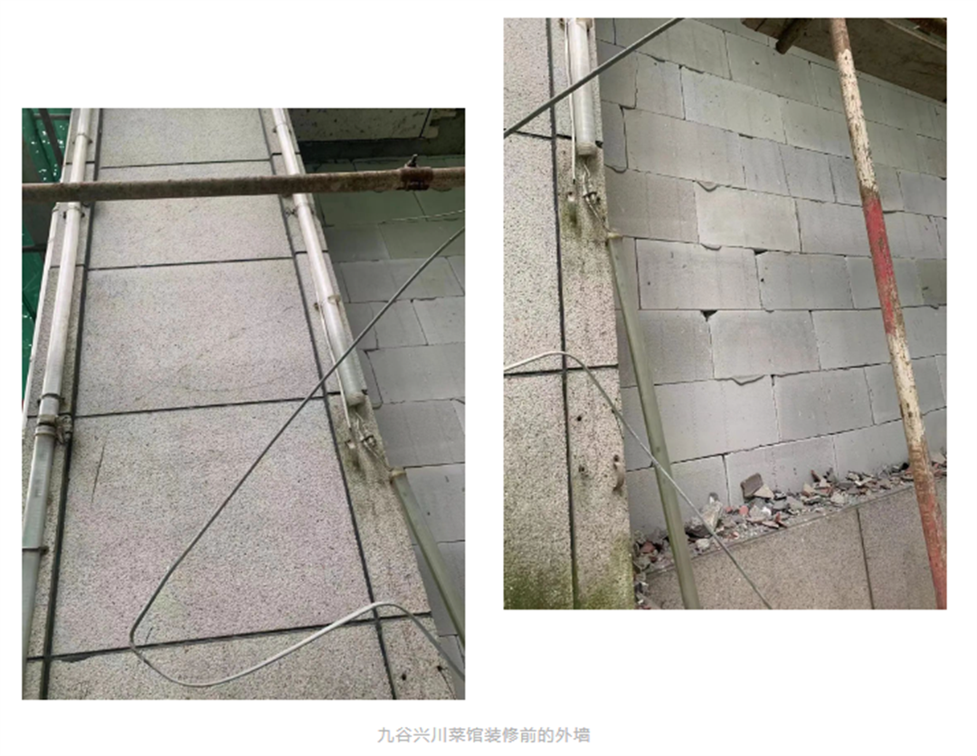 九谷興川菜是四川成都興熙北餐飲集團(tuán)旗下的高端餐飲品牌,位于華美東街186號,翻新前是一家KTV,外墻采用的是真石漆和干掛石材,在歲月侵蝕下已經(jīng)非常陳舊,到處可見凌亂及污漬。