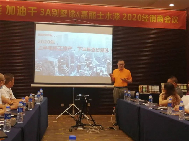 會(huì)議上,任總首先對當(dāng)前涂料市場狀況進(jìn)行交流與分析。眾所周知,開年的一場疫情,對整個(gè)社會(huì)都產(chǎn)生了極大的影響。目前疫情雖已進(jìn)入穩(wěn)定階段,但開年所帶來的影響仍然并將長期存在。因此,任德忠總裁針對疫情過后涂料經(jīng)銷商如何尋求出路快速復(fù)蘇,進(jìn)行了經(jīng)驗(yàn)分享,探討其中可能的出路。