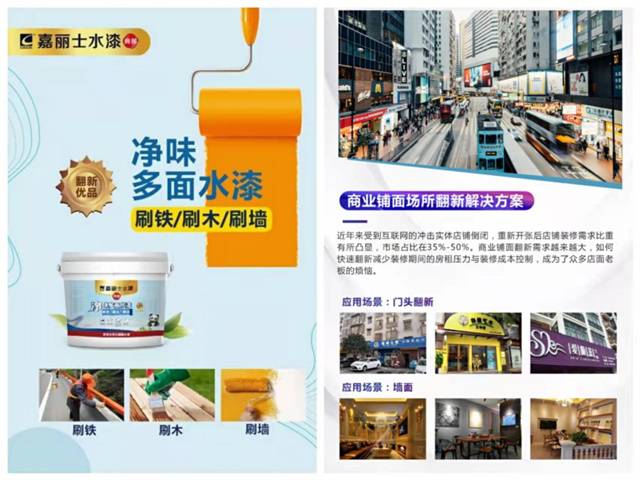 嘉麗士水漆專注于商業(yè)及公共空間涂裝和翻新業(yè)務(wù),產(chǎn)品凈味環(huán)保,施工過程不產(chǎn)生刺激性氣味,裝修不歇業(yè),即刷即入住,色彩保色性好,施工簡單、周期短,為店鋪商裝翻新帶來了福音。
