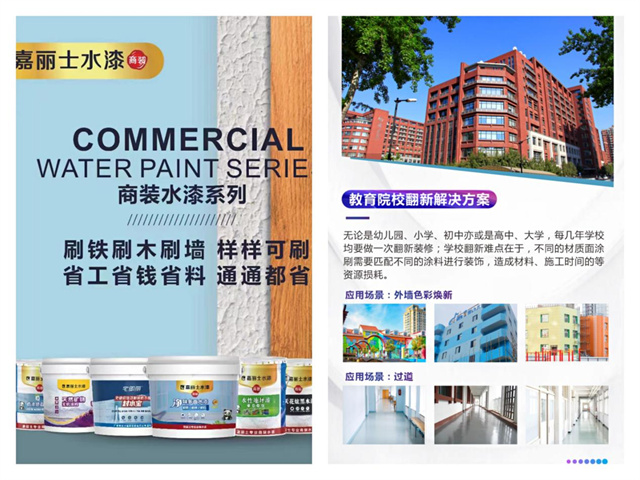 嘉麗士水漆專注于商業(yè)及公共空間涂裝和翻新業(yè)務,產(chǎn)品凈味環(huán)保,施工過程不產(chǎn)生刺激性氣味,可實現(xiàn)分層分區(qū)域施工,不影響正常教學。施工簡單、周期短。產(chǎn)品可調(diào)千色,色彩飽和度高,可實現(xiàn)校園豐富的色彩換新,打造夢幻校園環(huán)境。