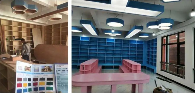 隨著醴陵實驗小學圖書館內(nèi)外墻涂裝的逐步完工,嘉麗士水漆獲得了項目承包商、學校師生的一致好評,對嘉麗士水漆凈味環(huán)保及色彩的空間運用設計稱贊有加。