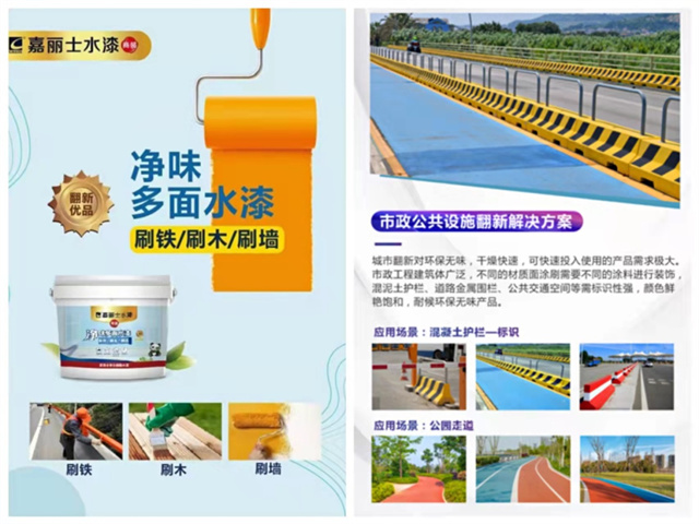 嘉麗士多面水漆,凈味環(huán)保、底面合一、遮蓋力好、可調千色、耐候耐水性能優(yōu)異,能在金屬面、木飾面、混凝土、墻面、PVC管道面等不同材質表面上進行施工,可以輕松滿足城市更新改造、提升城市形象的各項需求。
