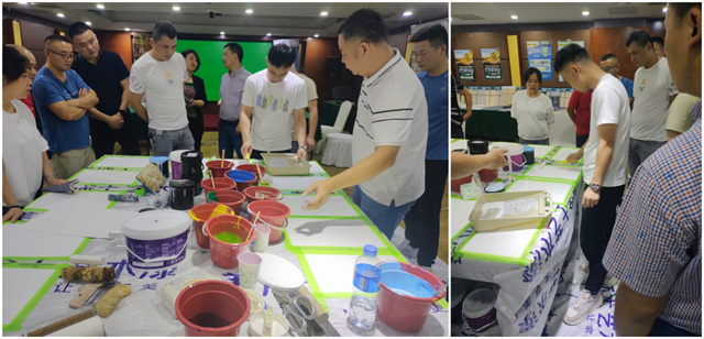 愛嘉中心事業(yè)部秉承技術(shù)創(chuàng)新的產(chǎn)品理念,對產(chǎn)品精益求精,不斷迭代升級。會議公布了藝術(shù)漆系列、商裝水漆系列、別墅仿石漆系列的最新產(chǎn)品,并就工藝、推廣等進(jìn)行了全面升級培訓(xùn),為經(jīng)銷商家人們快速占領(lǐng)市場、執(zhí)行落地、提供更優(yōu)質(zhì)的服務(wù)創(chuàng)造了理論及技術(shù)支持。