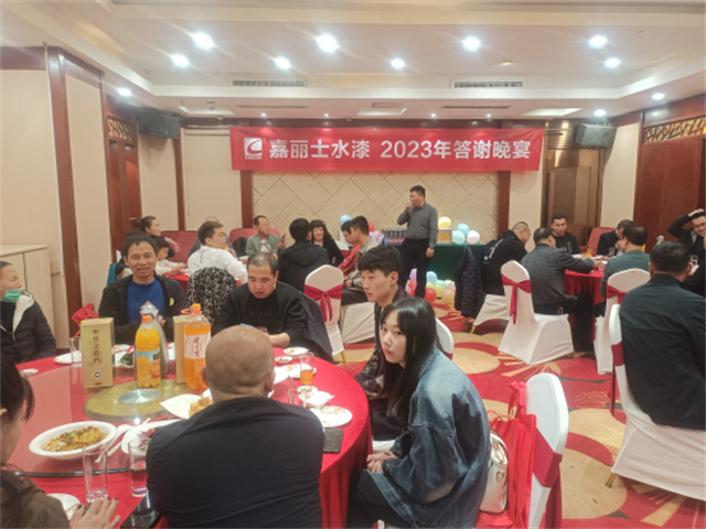 3月20日晚19點(diǎn),戰(zhàn)略會議在溫馨的答謝晚宴中拉開帷幕。晚宴期間,為答謝各位經(jīng)銷商家人們多年來的支持與信賴及拔沉與會之舉,設(shè)置了多輪踩氣球贏禮品活動,同時(shí)公布了嘉麗士水漆2022年度優(yōu)秀經(jīng)銷商、最佳經(jīng)銷商獎項(xiàng),并為獲獎單位舉行了隆重的頒獎儀式。
