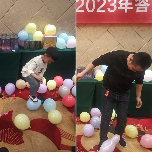 現(xiàn)場經(jīng)銷商及其家屬在參與踩氣球贏禮品活動