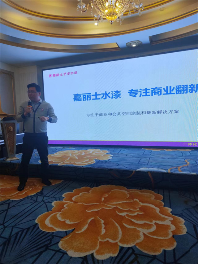 隨后,嘉麗士商裝項(xiàng)目負(fù)責(zé)人黃國義先生就商裝系列產(chǎn)品及業(yè)務(wù)體系發(fā)表講話,黃部長詳細(xì)向大家講解商裝水漆系列產(chǎn)品,從產(chǎn)品原料、性能、應(yīng)用場景、案例等方面展開闡述,并就工藝、施工要點(diǎn)等對在場的經(jīng)銷商進(jìn)行了全面升級培訓(xùn),為經(jīng)銷商家人們更全面了解產(chǎn)品、快速占領(lǐng)市場,執(zhí)行落地,提供優(yōu)質(zhì)的服務(wù)創(chuàng)造了理論及技術(shù)支持。